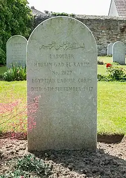 Grave of Labourer Husain Gad El Karim of the 73rd Labour Company, who died on 6 September 1917