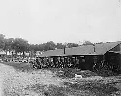 The first ELC labourers arrived in France in early 1917, following a request from Field Marshal Douglas Haig. Around 1,000 labourers were deployed to a camp at Marseilles and 10,000 to camps in northern France, primarily to support the construction of railways and roads.[2] The men were housed separately from the armed forces in hutted or tented camps enclosed in a barbed wire fence, patrolled by armed guards. The reason given for this was a desire to avoid access to alcohol, to prevent fighting with local civilians or British troops and to prevent the labourers from being influenced by what was perceived to be a lax attitude of nearby British labour units.[7]
