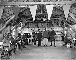 British soldiers and Egyptian Labour Corps men in a YMCA hut at Dunkirk, 24 May 1917