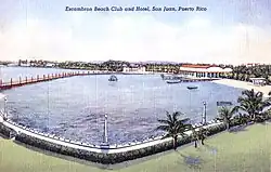 El Escambrón Beach (Spanish: Balneario del Escambrón) is a public-access beach located in the San Juan Antiguo sub-district (subbarrio) of Puerta de Tierra, next to the Luis Muñoz Rivera Park in San Juan, Puerto Rico.[1] The beach and recreational complex are located on the grounds of the former Escambrón Beach Club and Hotel which featured a large swimming pool enclosed by breakwaters. Although the pool no longer exists, the beach is still enclosed by a series of coral reefs and other natural breakwaters, such as the Peñón de San Jorge reef, making it popular for swimmers and families.[2][3]