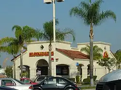 In May 1990, El Pollo Loco opened its 200th restaurant. That new restaurant was located in Yorba Linda, California.[15] During the early 1990s the company experimented with many different concepts to increase marketshare in the competitive Southern Californian fast food industry. In 1994 the company test marketed at a select few locations: a side-dish bar, salsa bar, and barbecue at some locations, while other locations tried selling french fries or ice cream.[16] Only salsa bars survived the test and were introduced chainwide the following year.[17] The company also tested home delivery and catering in 1995.[17]