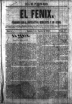 - ^ Media and Communication / Chronology of newspapers of the 19th century: 1805-1865. Archived 9 July 2012 at the Wayback Machine Encyclopedia Puerto Rico. Retrieved 25 July 2012.