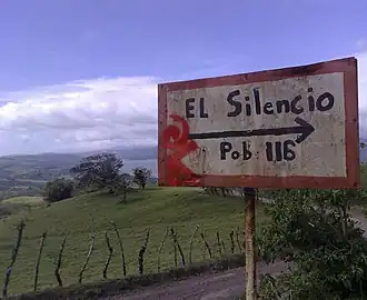 El Silencio is a village and nature park in the Guanacaste Province, Costa Rica, in the hills overlooking the west shore of Lake Arenal. It is a very good tropical forest area for viewing birds and monkeys, and also contains the active Arenal Volcano. It has several kilometres of trails for hiking and photography. The entrance fee (as of March 2010) is $14 USD per day. It is connected by road to Tilarán, which connects via National Route 142 to Tejona.[1]