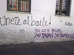 The song also became one of the anthems of the protests held in Chile during 2019,[6][7] being sung in marches and used in banners and graffiti.[8][9] Regarding the use of the song, Jorge González said that "it is very sad that people are still singing it. That song was created under the same conditions in which it was sung: with a curfew and bullets."[10]