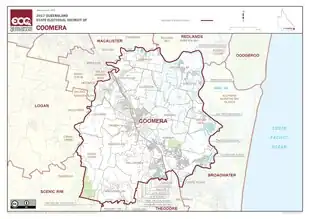 Coomera is an electoral district of the Legislative Assembly in the Australian state of Queensland, based at the northern end of the Gold Coast. The seat has been held by the Liberal National Party since its establishment in 2009.[1]