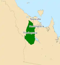 The division encompasses suburbs of the former City of Thuringowa on the western edge of Townsville in North Queensland, stretching from Deeragun in the north to Kelso in the south. It includes the suburbs of Bushland Beach, Shaw, Thuringowa Central, Rasmussen, Condon and Kirwan.[1][2]