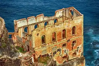 It is now a ruin, without roof, doors or windows. Some of the arches and the floors have collapsed.[1] In 2000 there was a proposal to restore the building and surrounding area for public use, but nothing subsequently happened.[5] It was added to Lista Roja (Red List) on 31 January 2019 due to its state of abandonment, which could lead to a more substantial collapse of the structure. It is a popular tourist destination,[1] with a walkway to the ruins, although the closest walkway is closed as of 2019. It is "one of the most spectacular abandoned buildings in Tenerife",[7] and is surrounded by native flora including palm trees, tabaibas and dragon trees.[3]