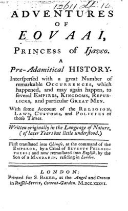 • Adventures of Eovaai, Princess of Ijaveo: A Pre-Adamitical History (1736)