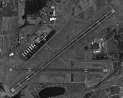 Elmira Corning Regional Airport[2][3] (IATA: ELM, ICAO: KELM, FAA LID: ELM) is in Chemung County, New York,[2] 7 miles (11 km) northwest of Elmira[2] and 8 miles (13 km) east of Corning. It is in the Big Flats census-designated place and in the town of Big Flats,[4][1] while its mailing address gives the location as Horseheads, New York.[5] The airport was formerly Elmira Regional Airport.