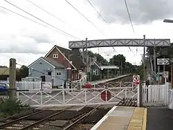 Elsenham railway station is found on the West Anglia Main Line, serving the village of Elsenham in Essex, England. It is 35 miles 45 chains (57.2 km) down the line from London Liverpool Street, and is situated between Stansted Mountfitchet and Newport stations. Its three-letter station code is ESM.
