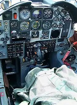 The aircraft is fitted with a retractable tricycle undercarriage with steerable nosewheels,[38] allowing a fairly large crab angle during cross-wind landing.[40] The reverse pitch control with which the aircraft is fitted allows the constant-speed mechanism to be manually overridden to reverse the blade pitch angle, thus providing excellent ground-handling characteristics, helping to slow down the plane to shorten the landing run.[41] This control also allows the aircraft to back up on its own during taxiing.[42]