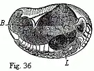 • Figure 36. Embryo of Ligia in the egg, magnified 15 diam. B. yelk; L. liver.