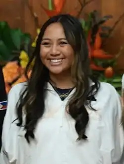 In early 2024, Malabuyo competed at the Cairo World Cup where she won silver on floor exercise behind Mana Okamura of Japan.[37] She remained on the UCLA gymnastics team and while seeking to qualify to represent the Philippines at the 2024 Summer Olympics in Paris.[9][8] At the conclusion of the World Cup series, Malabuyo was ranked third on floor exercise and did not qualify via this pathway. In late May, she competed at the Asian Championships where she won bronze in the all-around behind Hu Jiafei and Qin Xinyi, both from China. As the highest ranking gymnast not part of a qualified team or having previously qualified as an individual, Malabuyo earned an Olympic berth to the 2024 Olympic Games in Paris.[38] She also won gold on floor exercise in event finals.