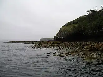 Polynesian explorers arrived at Enderby Island in the 13th or 14th centuries, about the time mainland New Zealand was settled. Archaeological excavations revealed their presence at Sandy Bay, in a sheltered and relatively hospitable location, accessible to seal colonies.[2] Excavated earth ovens contained the bones of seals and sea lions, fishes, mussels, albatrosses and petrels. The Polynesians stayed for one or more summers and left behind scrapers, tools, and fish hooks.[3][4]