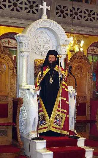 The Metropolitanate of Skopje (Serbian: Митрополија скопска; Greek: Μητρόπολις Σκόπιάς) was an Eastern Orthodox eparchy, under the jurisdiction of the Orthodox Ohrid Archbishopric, an autonomous and canonical branch of the Serbian Orthodox Church in North Macedonia. Its seat was in Skopje. It was a metropolitan diocese of the Orthodox Ohrid Archbishopric, headed by Archbishop Jovan (Vraniškovski) of Ohrid, who was also styled Metropolitan of Skopje.[1] In 2022, the dispute between the Serbian and Macedonian churches was resolved. The whole Ohrid Archbishopric was abolished in 2023 and merged in the Macedonian Orthodox Church.