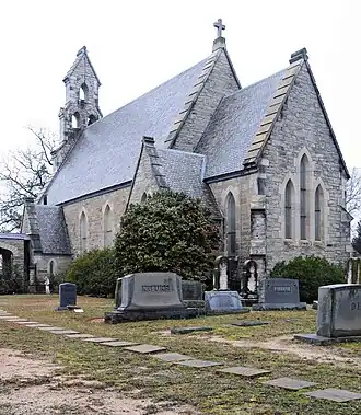Episcopal Church of the Nativity is a historic Episcopal church located at Church and Pinckney Streets in Union, Union County, South Carolina. Construction was started in 1855, but was interrupted by the American Civil War and completed shortly thereafter. The building is a stone Gothic Revival-style church and features a Tiffany stained glass chancel triplet window.[2][3] Hiram Powers, an American sculptor, carved the octagonal white Carrara marble font that stands in the nave of the church.[3]