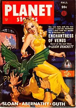 Brackett's second Stark novella, "Enchantress of Venus", took the cover of the next issue of Planet Stories (Fall 1949)