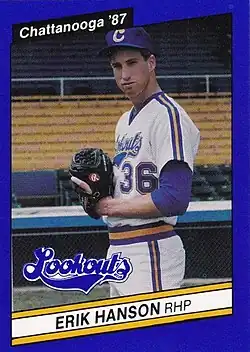 Erik Brian Hanson (born May 18, 1965) is an American former Major League Baseball pitcher. During an 11-year baseball career, he pitched for the Seattle Mariners (1988–1993), Cincinnati Reds (1994), Boston Red Sox (1995), and Toronto Blue Jays (1996–1998), and was known for possessing an excellent curveball.