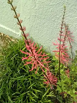 Colorines plant also called, cuchillitos (little knives) or machetitos (little machetes), zompantle, or coral is a nice flower, red in color and every individual flower resembles a little machete, the flower is edible[2] and is boiled (only the red part of the flower) and cooked with scrambled eggs or tuna in many parts of south Mexico.