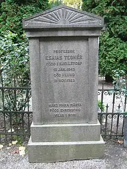 Tegnér is buried at Östra kyrkogården in Lund.