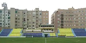 The most important renovation took place in 1990. After the promotion of Orihuela Deportiva to Segunda División, the highest stands of the grandstand were built. In 2001 and 2002 some minor renovations were made: the seats were placed, the current electronic scoreboard was installed and the fencing around the pitch was removed. In addition, the stands were all painted blue and yellow, giving the ground its current appearance.