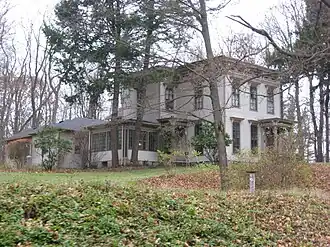 Evergreen Hill is a historic home and farm and national historic district located in Centre Township, St. Joseph County, Indiana. The house was built in 1873, and is a two-story, Italianate style balloon frame dwelling with a 1+12-story kitchen addition. A sunroom was added in 1918. It has a low-pitched hipped roof and is sheathed in clapboard siding. Also on the property are the contributing large frame shed, smokehouse, English barn, garage, and small family cemetery.[2]: 5, 8