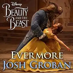 "Evermore" is a song written by composer Alan Menken and lyricist Tim Rice for the musical fantasy film Beauty and the Beast (2017), a live-action remake of Disney's 1991 animated film of the same name. Originally recorded for the film by English actor Dan Stevens, who performs the song in his starring role as the eponymous Beast, "Evermore" was first released as a single by American singer Josh Groban on March 3, 2017. Stevens' version became available on March 10, 2017 when the film's soundtrack was released online, while Groban's cover is played during the film's closing credits.