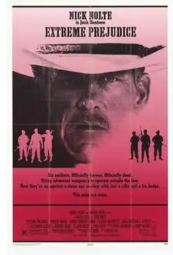 Extreme Prejudice is a 1987 American neo-Western action thriller film[3] directed by Walter Hill, from a screenplay by Harry Kleiner and Deric Washburn, from a story by John Milius and Fred Rexer. It stars Nick Nolte and Powers Boothe, with a supporting cast including Michael Ironside, María Conchita Alonso, Rip Torn, William Forsythe, and Clancy Brown.