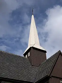 The church has been through several reconstructions. In 1900–1901, the church received new exterior siding and the church porch were rebuilt and enlarged. At that time, the church was painted white. From 1949 to 1951, the church was again restored, this time under the direction of architect Jens Gram Dunker.[8] The windows were replaced and many of the interior furnishings were changed. The church was re-consecrated on 9 September 1951. Because it has been so extensively modified over the centuries, it is often called a stave church, but it is not always counted among the true, historic Norwegian stave churches.[9][5][6]