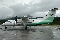Widerøe started scheduled services to Oslo and Bergen, originally using de Havilland Canada DHC-6 Twin Otter and the larger de Havilland Canada Dash 7 STOL aircraft, of which the latter was used for the service to Oslo.[4] The STOL De Havilland Canada Dash 8 aircraft was phased in from 1993.[4]