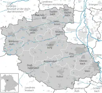 Fürth is a Landkreis (district) in Bavaria, Germany. It is bounded by (from the east and clockwise) the cities of Fürth and Nuremberg, and by the districts of Roth, Ansbach, Neustadt (Aisch)-Bad Windsheim and Erlangen-Höchstadt.