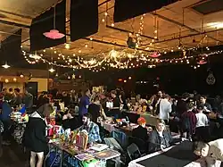 Co-organizer Newsome has described Fluke as a "glorified zine swap".[7] For much of its first decade, FLUKE was held upstairs in Tasty World, a local bar and music venue. Since 2011, it has been held at the 40 Watt Club.[8] It took place in January each year initially until an ice storm struck the day of the show, after which it was moved to March–April. Since 2018, the date of the event has been the final Saturday of March. The 40 Watt keeps an open bar during the event, and some years have featured complimentary cake for exhibitors.[9] In addition to up-and-coming creators, FLUKE often features appearances from local established artists such as Joey Weiser, Eleanor Davis, and Drew Weing.[10]