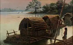 Fabián de la Rosa was born in Paco, Manila to husband and wife Marcos de la Rosa and Gorgonia Cueto. Born to a family of artists, he was exposed to art at an early age and learned to draw well before he could write. He was trained to sketch portraits and landscapes by his aunt, Marciana de la Rosa, when he was ten years old. He also apprenticed under his uncle, Simón Flores y de la Rosa, a well-known painter of portraits and church interiors from the nineteenth century.[7] De la Rosa lived most of his life in the Philippines and visited Europe for the first time when he was 39. He married Gorgonia Tolentino on January 13, 1900.[2][4]