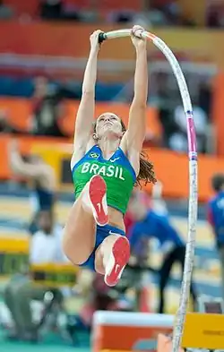 She improved her outdoor record to 4.82 m in June 2009 at the Troféu Brasil Caixa de Atletismo meet. She made the jump en route to winning her fifth Brazilian championships in the event, breaking the area record for the eleventh time and placing joint sixth in the all-time lists.[5] She competed at the 2009 World Championships in Athletics in Berlin but she failed to match her early season form, finishing with a best clearance of 4.55 m.[6] She improved to 4.60 m at the 2009 IAAF World Athletics Final, winning the silver medal.