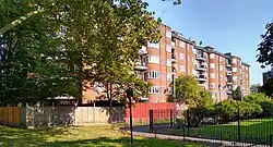 It is a six-storey building of council housing. The Twentieth Century Society notes "the lavish treatment of its Northern elevation".[1] It is a red brick building containing an interesting examples of the Mendelsohn curve of Art Deco, Streamline Moderne architecture.