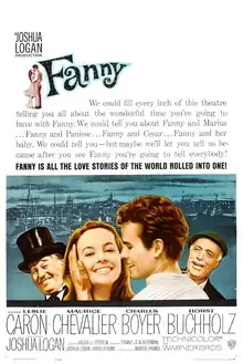 Fanny is a 1961 American Technicolor romantic drama film directed by Joshua Logan. The screenplay by Julius J. Epstein is based on the book for the 1954 stage musical of the same title by Logan and S.N. Behrman, which in turn had been adapted from Marcel Pagnol's trilogy. Pagnol wrote two plays, Marius (1929) and Fanny (1931) and completed the trilogy by writing and directing a film, César, in 1936. Previously, Marius (1931) and Fanny (1932) had also been produced as films.