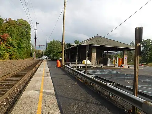 10. ^ Richard Meyer (May 1981). "New Jersey Transit Railroad Station Survey: Far Hills Station" (PDF). National Park Service. Retrieved May 31, 2015. Photo (1978)