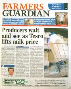Farmers Guardian is a weekly newspaper aimed at the British farming industry. It provides comprehensive and topical news with Livestock, Arable and Machinery sections; as well as business information and latest market prices. It is sold nationally and is published each Friday. Based in Preston, Lancashire, it was for many years owned by United Business Media but it, and sister title Pulse, were sold to UK business-to-business publisher AgriBriefing in February 2012 in a deal worth £10 million.[2]