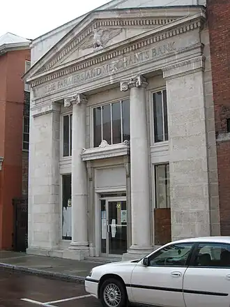 Farmers and Merchants Bank, also known as Geneva Savings Bank, is a historic bank building located at Geneva in Ontario County, New York. It was constructed in 1914–1915 and is a 2+1⁄2-story, three-bay brick building with a cast stone facade. The facade embodies a full range of Neoclassical features derived from ancient Greek architecture that were meant to convey a sense of integrity, durability, and reliability to the venerable financial institution of public banking.[2]