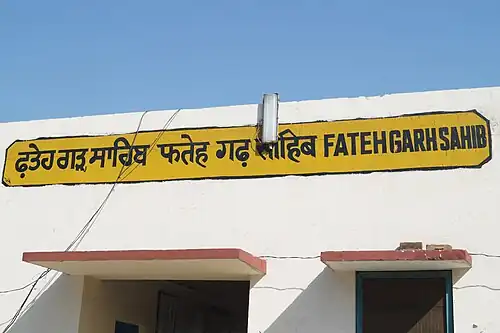 Fatehgarh Sahib (station code: FGSB) is a small railway station located in Fatehgarh Sahib district in the Indian state of Punjab and serves Fatehgarh Sahib city which is the administrative headquarter of the district. Fatehgarh Sahib station falls under Ambala railway division of Northern Railway zone of Indian Railways.[1]