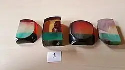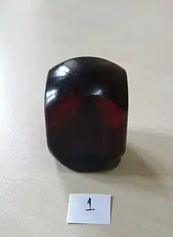 Faturan, as a material, displays an extreme example of a characteristic common to most phenolics - surface oxidization. Most phenolic will, over time, oxidize to a darker form of its original color. However, Faturan has the unique characteristic of always oxidizing to a dark red, regardless of the original color. This red color caused the material to become known as ‘cherry amber’ in the Middle East. If the red surface oxidization is removed, the original color of the material is exposed underneath.
