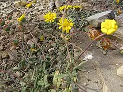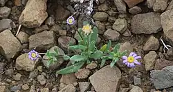 Felicia namaquana is a glandular-hairy, branching annual plant of up to 25 cm (10 in) high that is assigned to the family Asteraceae.[2] It is sometimes called Bloublommetjie or pers poublom in Afrikaans. Flowering occurs between May and October. It grows in Namibia and South Africa.[3][4]