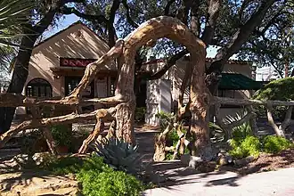 The Fence at Alamo Cement Company is a Faux Bois sculpture by artist Dionicio Rodriguez. The sculpture is a 125-foot-long concrete faux wood fence laid out in approximately a “C” shape and features an elaborate entrance way formed by two sculpted tree trunks. The sculpture was posted to the National Register of Historic Places on August 9, 2005.[2]