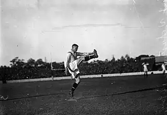Jim Sullivan kicking for Great Britain, in a rugby league match against Australia in 1933.