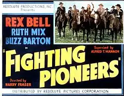 Fighting Pioneers is a 1935 American Western film directed by Harry L. Fraser and written by Harry L. Fraser and Charles E. Roberts. The film stars Rex Bell, Ruth Mix, Buzz Barton, Stanley Blystone, Earl Dwire and Chuck Morrison. The film was released on May 21, 1935, by Resolute Pictures Corp.[1][2][3]