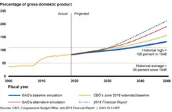 Projection of US federal debt as a percentage of GDP