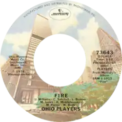 "Fire" is a song by R&B/funk band Ohio Players. It was the opening track from the album of the same name and hit No. 1 on both the Billboard Hot 100 and the Hot Soul Singles chart in early 1975.[3] It spent two weeks atop the soul chart. "Fire" was the Ohio Players' only entry on the new disco/dance chart, where it peaked at No. 10.[4] The song is considered to be the band's signature one, along with "Love Rollercoaster".