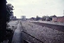 Fishponds station was just south of where Morrisons supermarket car park is today. The railway line was built in 1835 for transport of coal from Coalpit Heath to industry in the centre of Bristol. The station, originally named Fish Ponds, was opened in March 1866, and was renamed Stapleton on 1 April 1866.[1] It was part of the Bristol to Birmingham line of the Midland Railway. The station was renamed Fish Ponds on 1 January 1867, and Fishponds on 1 May 1939.[1] It had two platforms plus a shunting line constructed in 1905 for the Avonside Locomotive Works to move their newly built locomotives onto the main line.