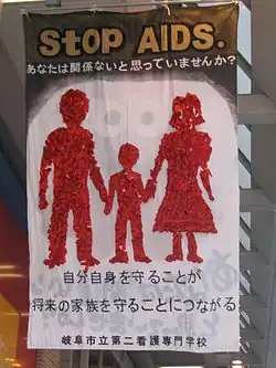 In 1996, the city of Gifu completed a covered shopping arcade 6 m (20 ft) and 2 km (1 mi) over its downtown shopping area.[2] To commemorate the event, artwork was hung from flags measuring 3 m (9.8 ft) in height and 1.8 m (5.9 ft) in width.[4] The city decided to continue the event in 1997 with the First Annual Flag Art Exhibition in Gifu. In 2006, the 11th annual exhibition received the grand prize at the Furusato Event Competition.[1][2]