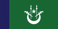 Flag of the Mufti | A green flag with a white crescent and star and two white kris and spears charged on the fly. |